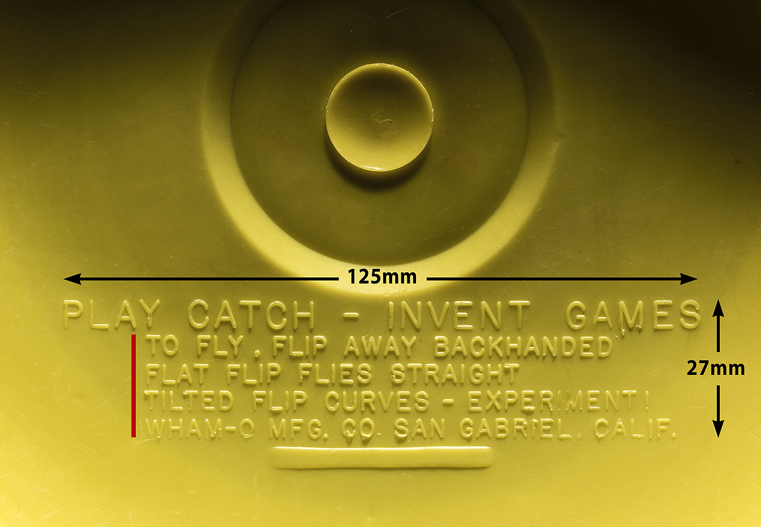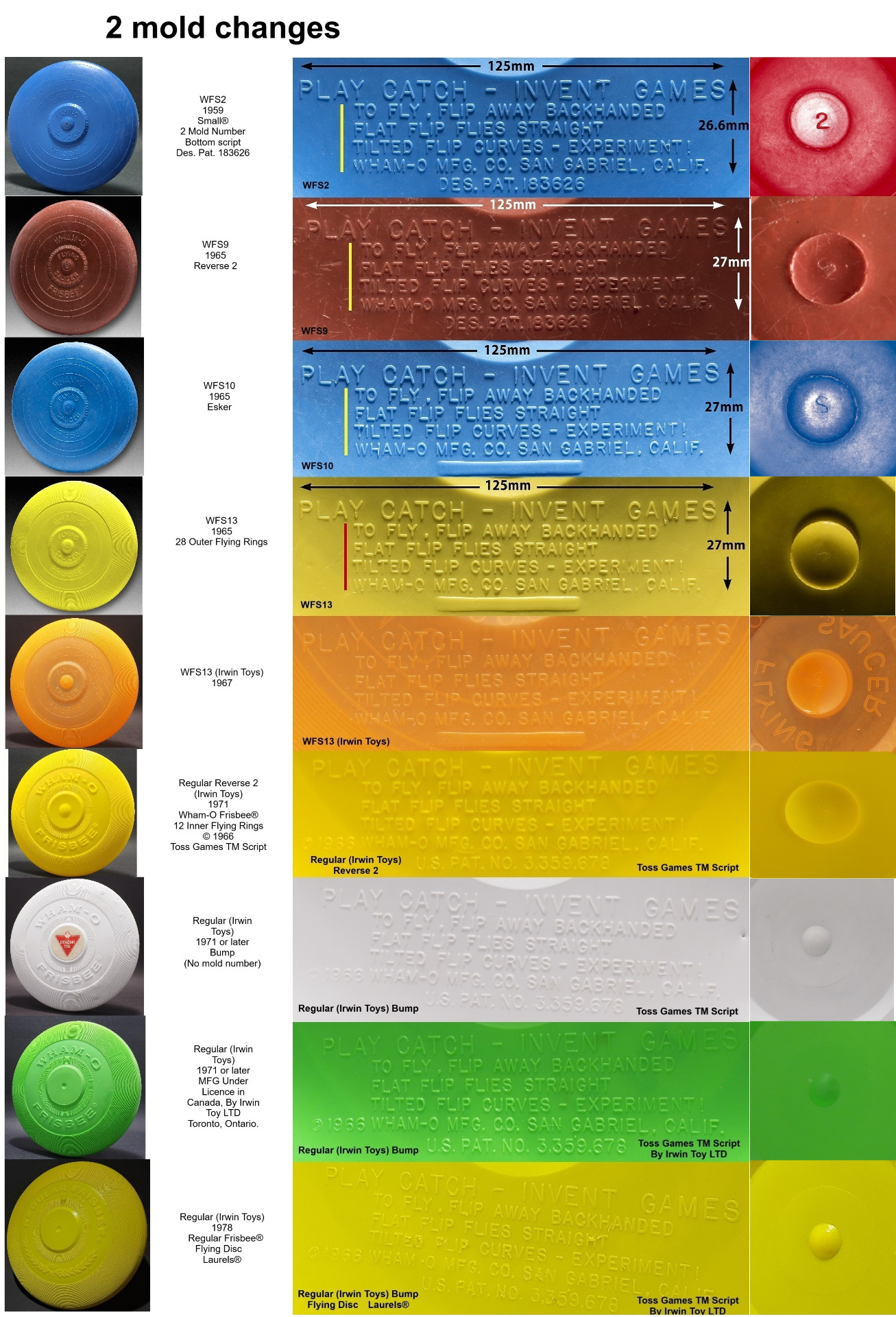 The Flying Saucer No Mold had failed, so Wham-O made the Mold 2 more durable by making the disc slightly thicker and increasing the width of the rim.