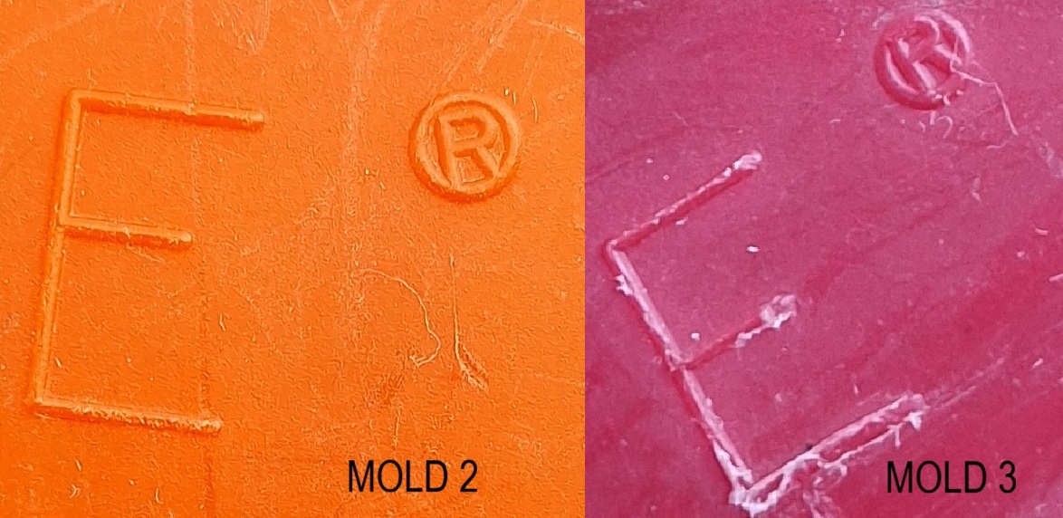 The picture shows the differences in the small ® mark (Mold 2 and Mold 3).