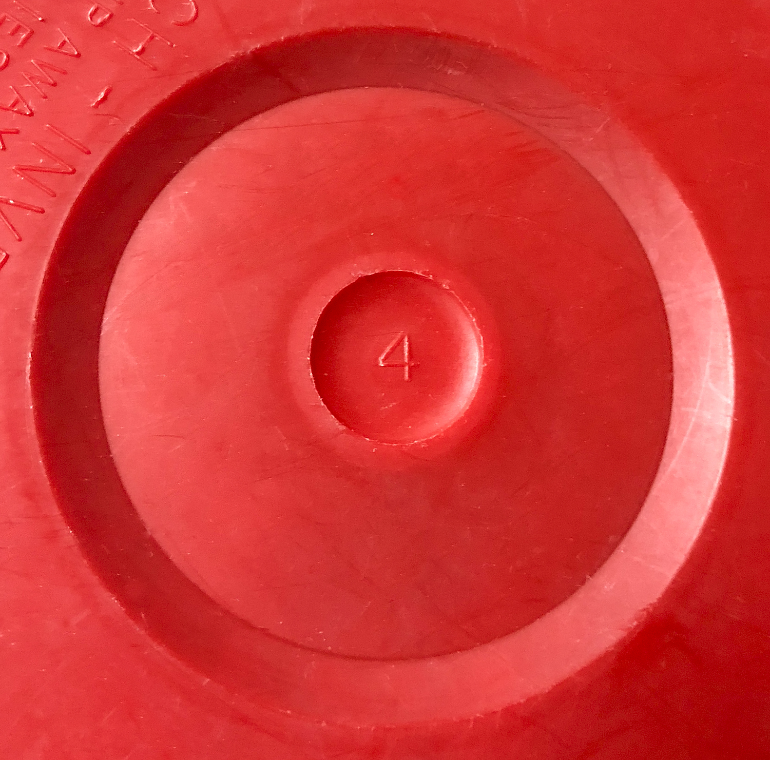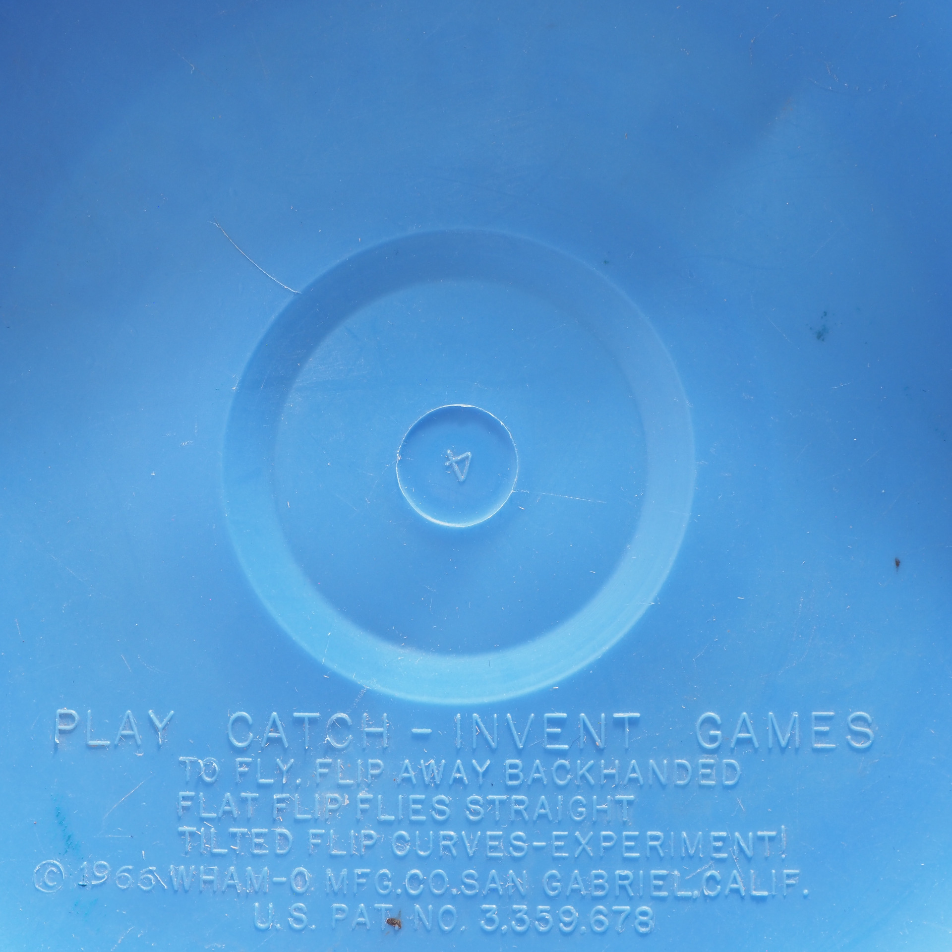 There is another version of Mold 4 Flying Saucer. There is only one change. A \ character has been added in front of the mold number in the lower left corner. Again, we don't know the answer to this question, why? Furthermore, we are not sure when this version was made. One of the \4 Flying Saucers I bought came with Wham-O throwing instructions. They were updated for 1964. Of course, we can't be sure if the instructions originally belonged to this Flying Saucer. But this flimsy evidence is still the best we have.